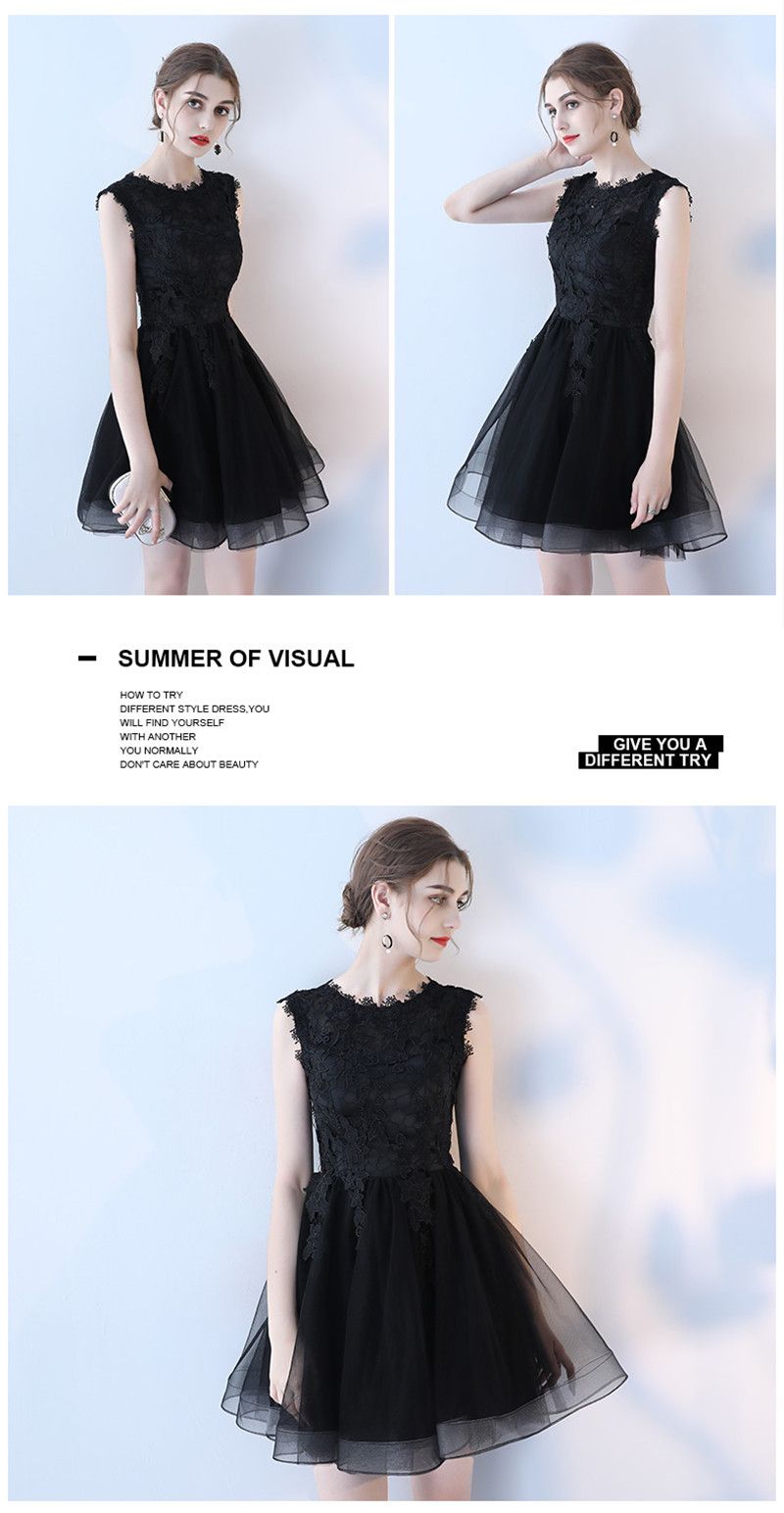 Acquista Moda Nero Tulle E Pizzo Corto Vestito Bridemaid O Collo ...